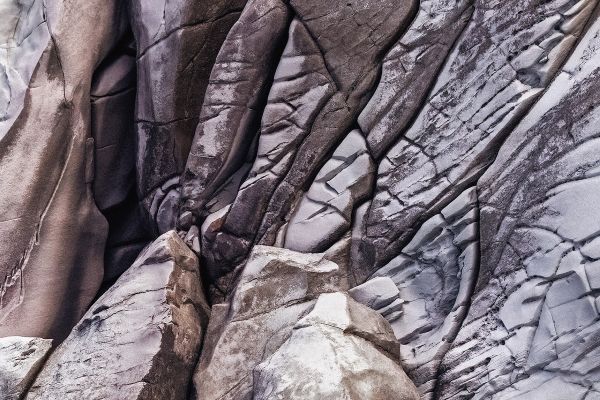 This photographic series focuses on natural occurring fractures in exposed rock faces along the mercury Islands. The images isolate sections of stone to illustrate how stress, compression, and geological movement create cracks, joints and layered breaks.