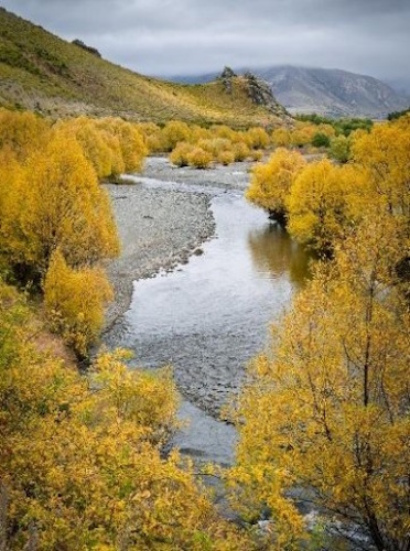 We woke to a major change to the weather. The clouds hung low and heavy, making the choice of where to stop to take photos a challenge. Nevertheless, misty valley views with the road following rocky streams made for some fantastic photography. With lots of golden grassed crimpled hills with low mist, what’s not to like? Considering the weather was a little wet, some of my favourite shots are from this morning. What was interesting is that the Willow colours had started to turn. The yellow tinged, lime green foliage was foreground to the golden hills – very disconcerting to see the non-summer already over! The wet weather made the crossing of the fords an experience – though they were not frighteningly deep. At one point, we had the fun of photographing a group of motorcyclists splashing through the water. Throughout the trip, wildling pines could be seen in various areas, they’re a massive problem and not easy to address, as told by one of the locals we were lucky enough to encounter at one of the many gate openings. Along route we popped in and out of the car for plenty of wide vista landscape images. Trying to get an image without power lines could be challenging at times. In addition to the impressive valley and mountain vistas there were varieties of beehives – from naturally coloured wood to painted teals, greens and blues, and some old buildings – including original cob cottages.
